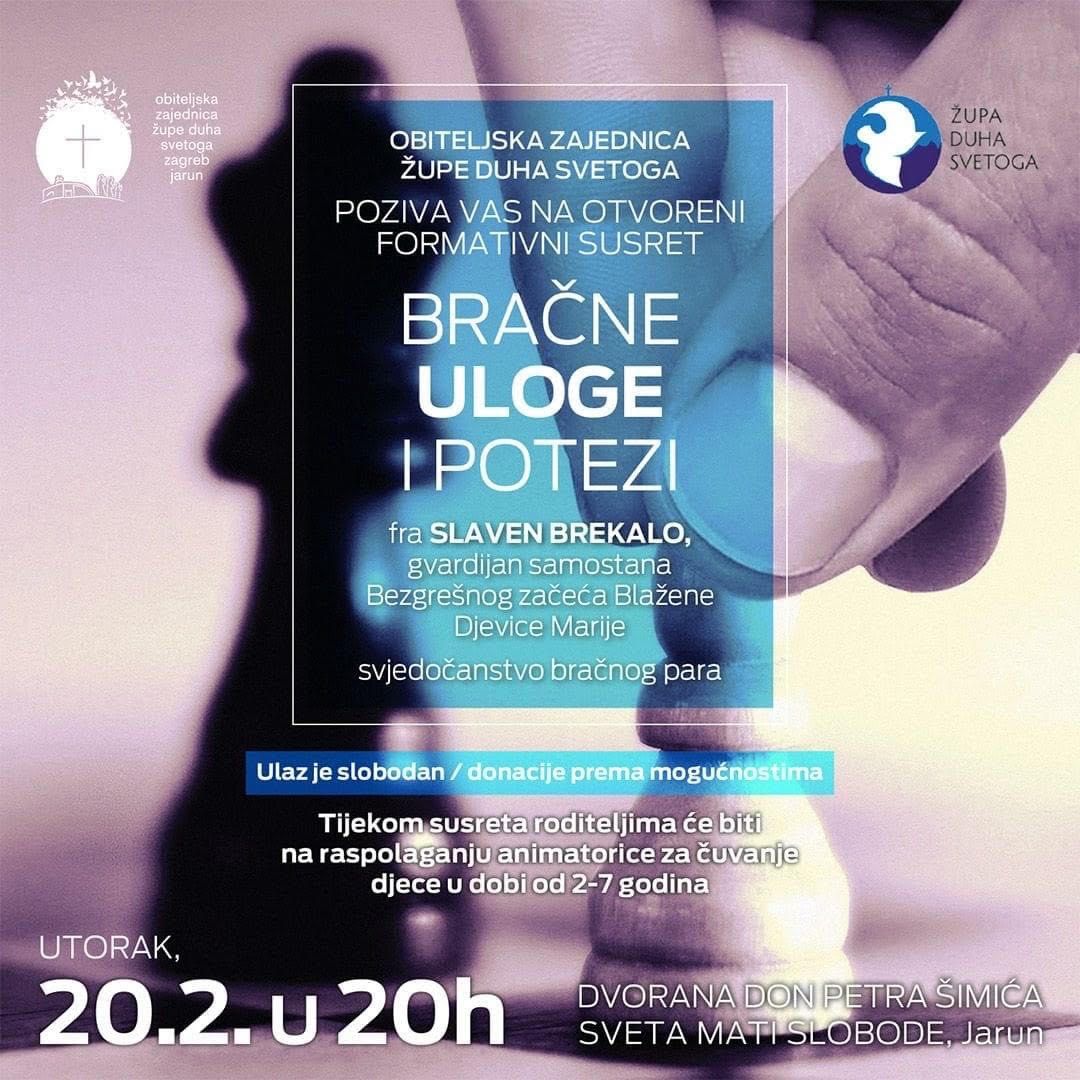 O bračnim ulogama, hijerarhiji obiteljskih odnosa i ostalim izazovima na navedenu temu govorit će fra Slaven Brekalo te gostujući bračni par.