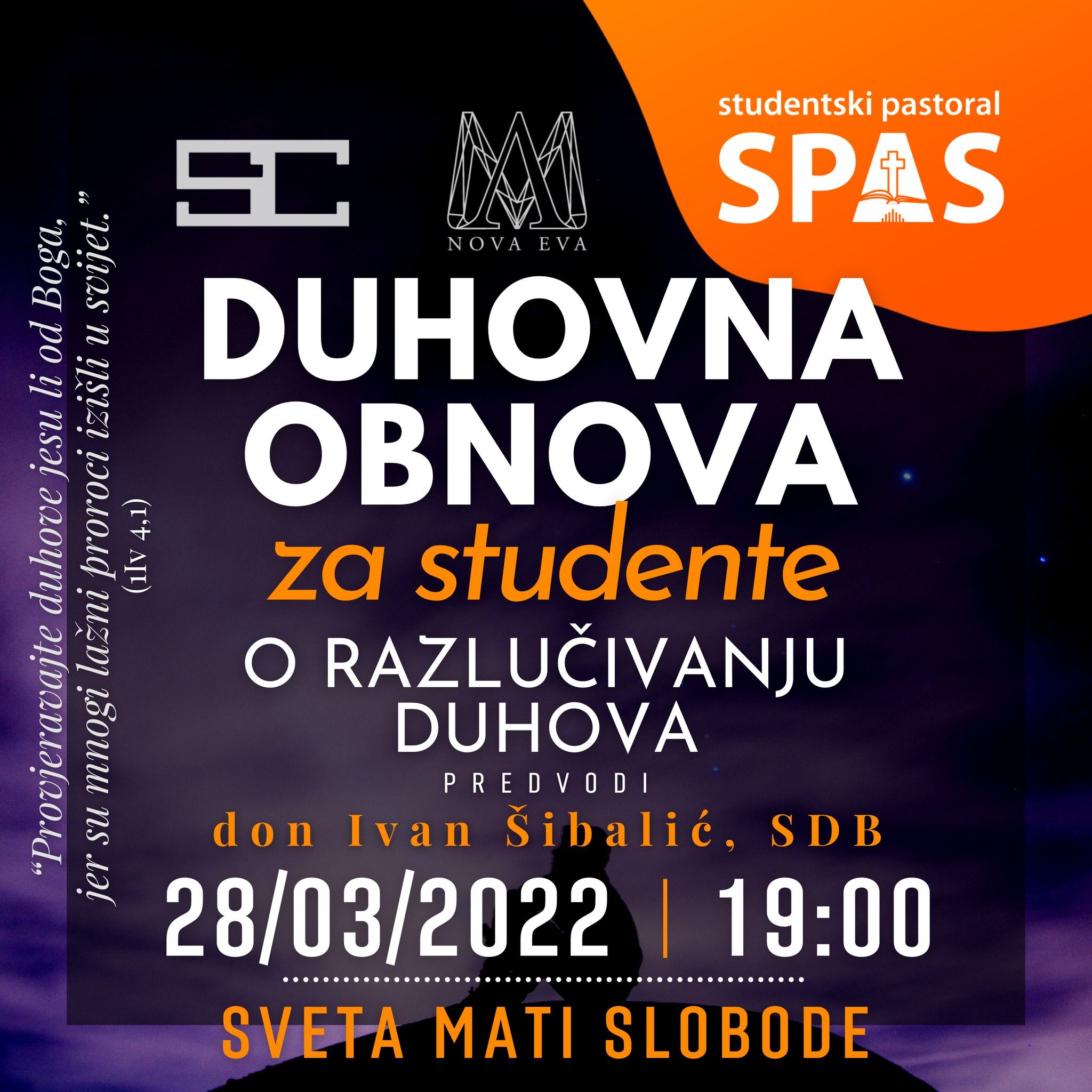 U utorak, 28. ožujka održat će se korizmena duhovna obnova za studente koju će predvoditi don Ivan Šibalić, SDB, studentski kapelan u Zadru.