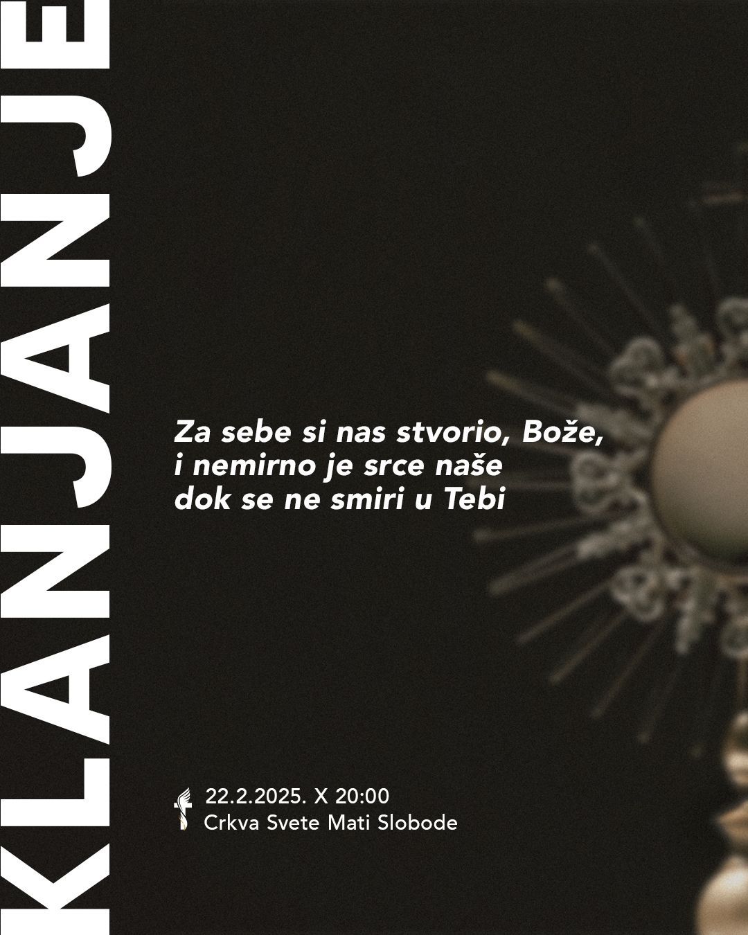 U subotu, 22. veljače u 20h bit će klanjanje zadnje subote u mjesecu koje animira molitvena zajednica Božja pobjeda.