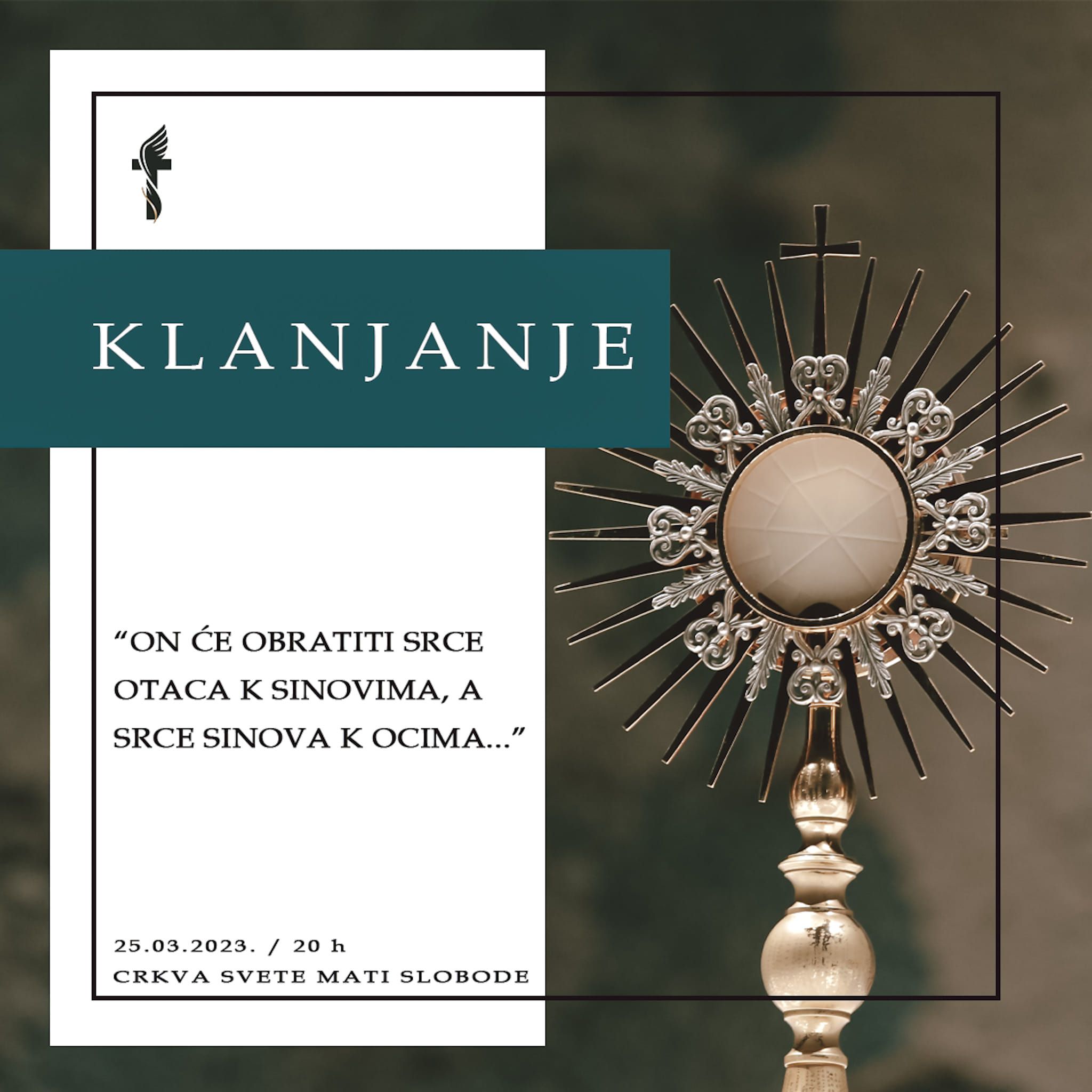 U subotu, 25. ožujka u 20h bit će klanjanje zadnje subote u mjesecu koje animira molitvena zajednica Božja pobjeda.