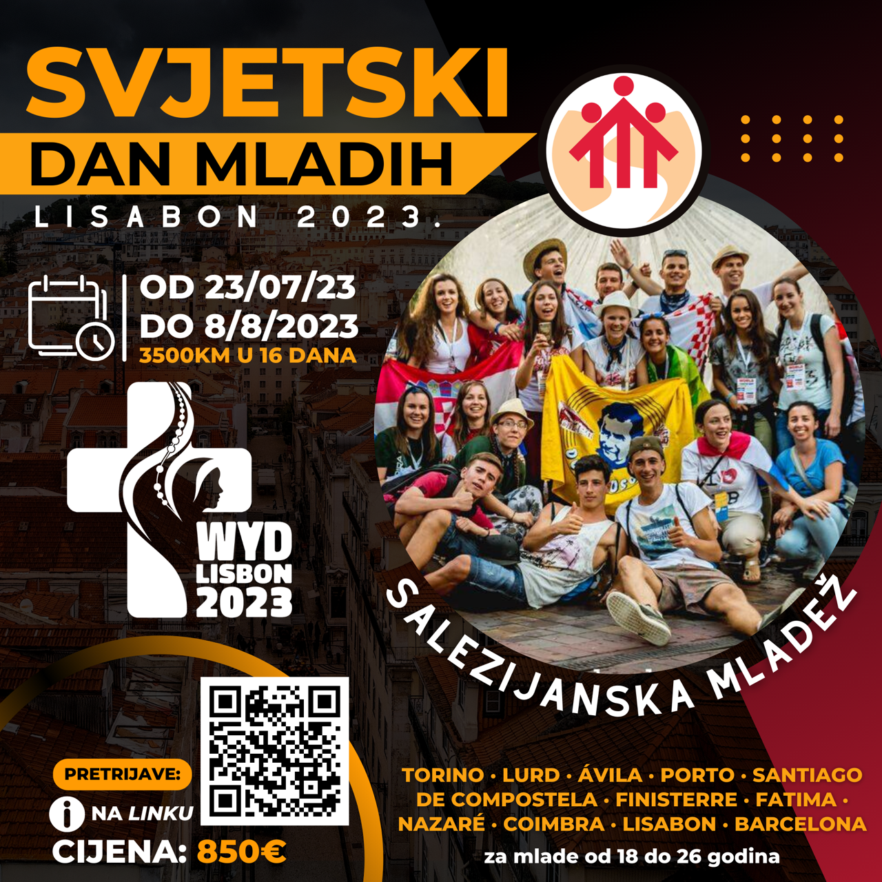 Naša salezijanska mladež organizira odlazak na SVJETSKI DAN MLADIH u LISABON. Hodočašće traje od 23. srpnja do 8. kolovoza.