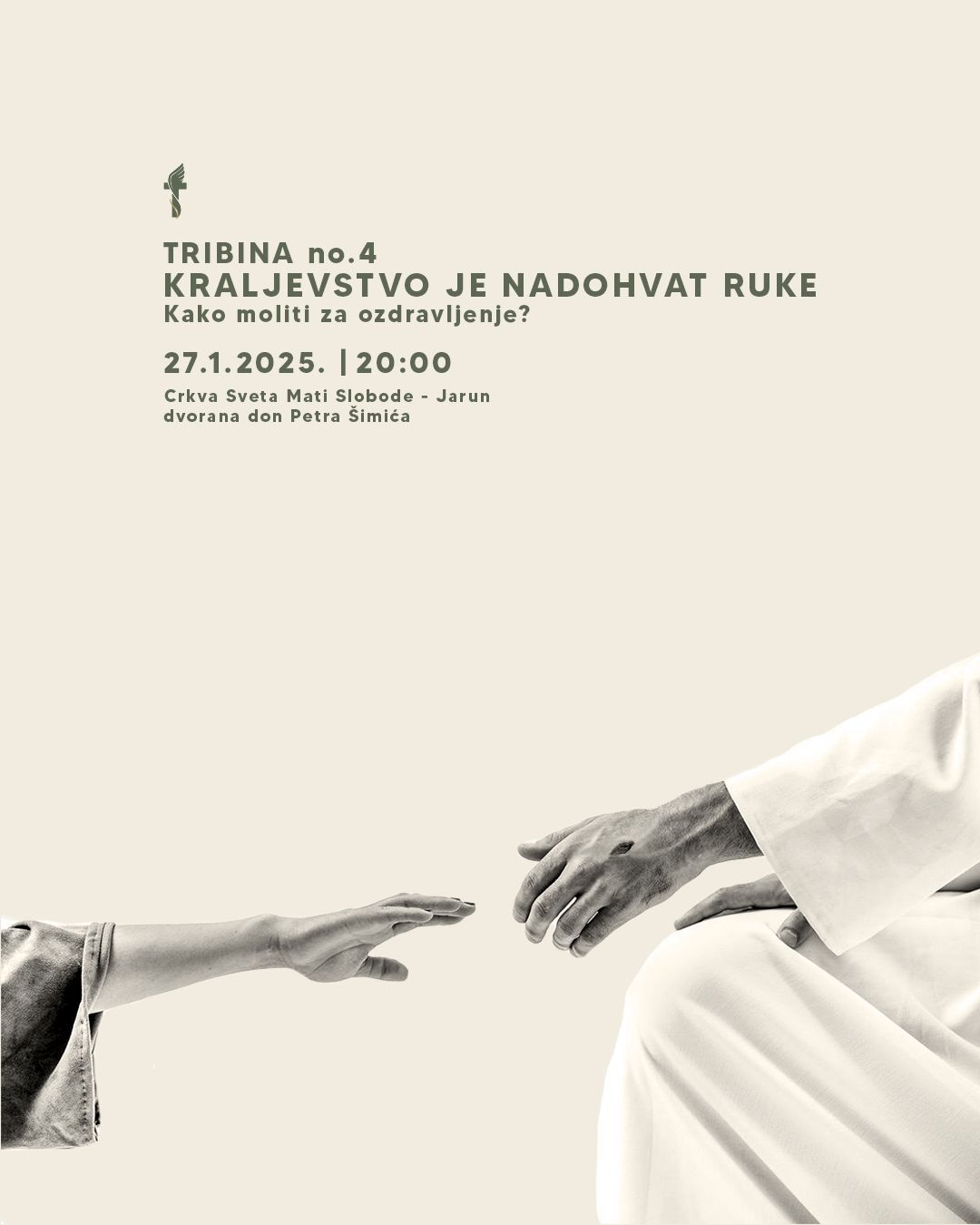 U ponedjeljak, 27. siječnja u 20h u dvorani don Petra Šimića, a u organizaciji naše župe i molitvene zajednice Božja pobjeda održat će se četvrta i zadnja tribina o ozdravljenju.