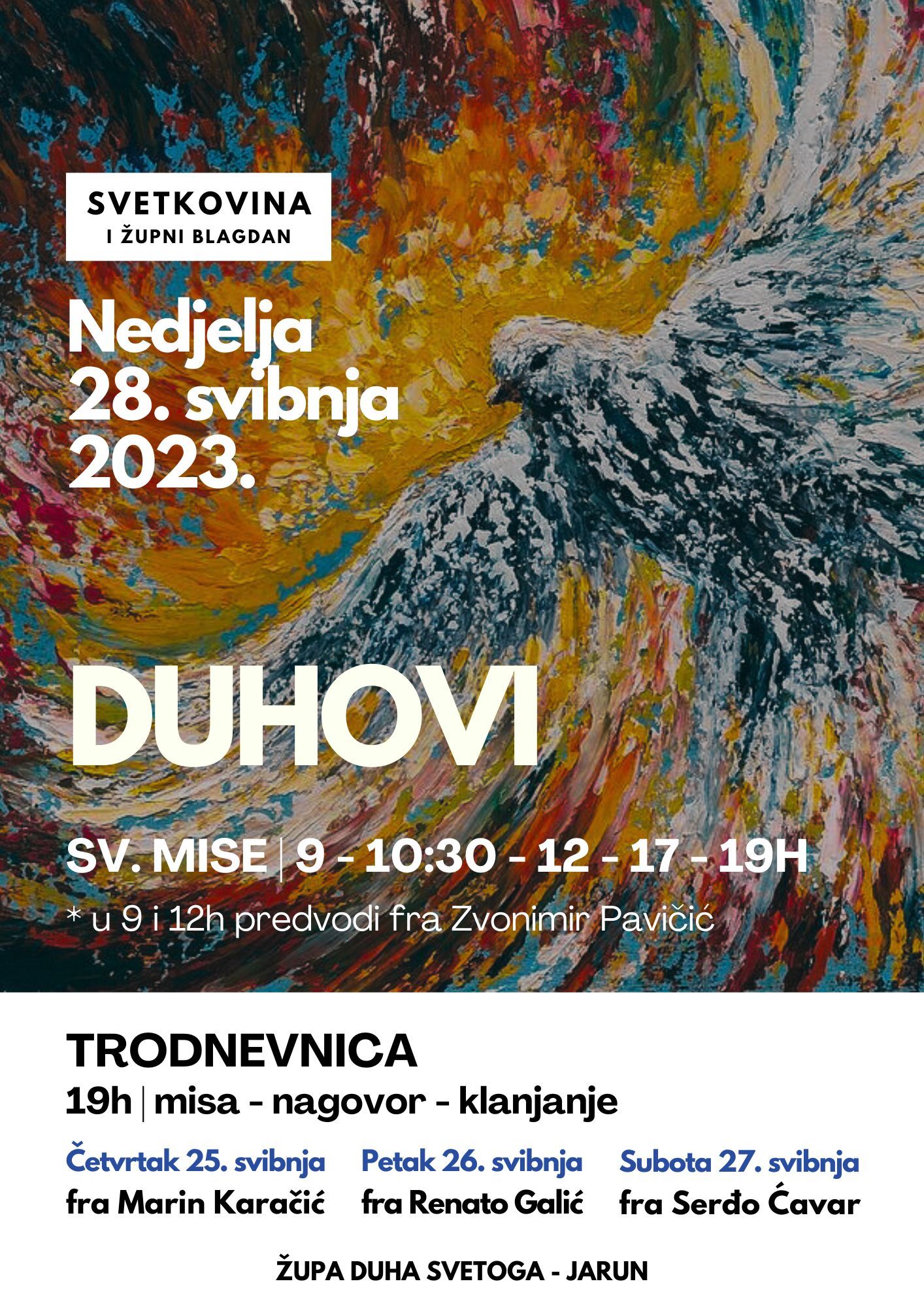 Mise su na taj dan u 7, 10:30 i 19h u crkvi Sv. Mati Slobode i u 7h u crkvi Duha Svetoga.